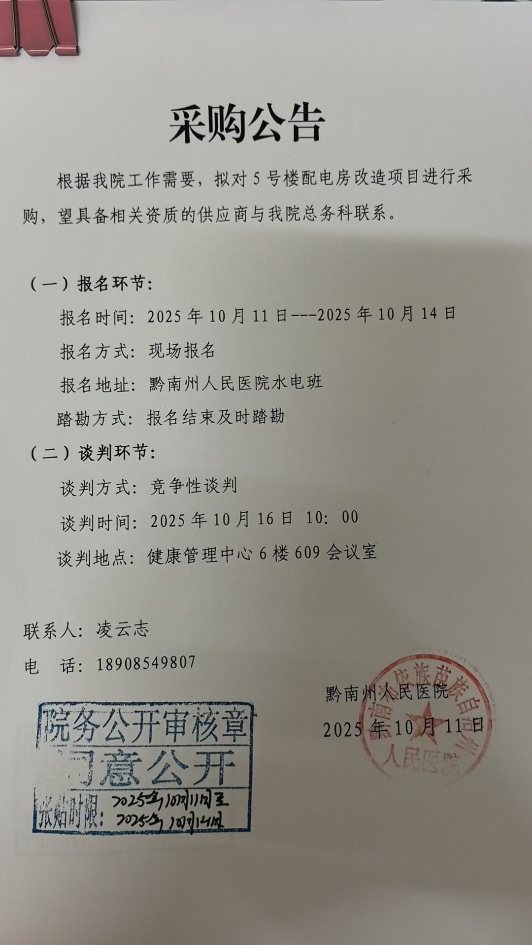 关于黔南州人民医院5号楼配电房改造项目的采购公告