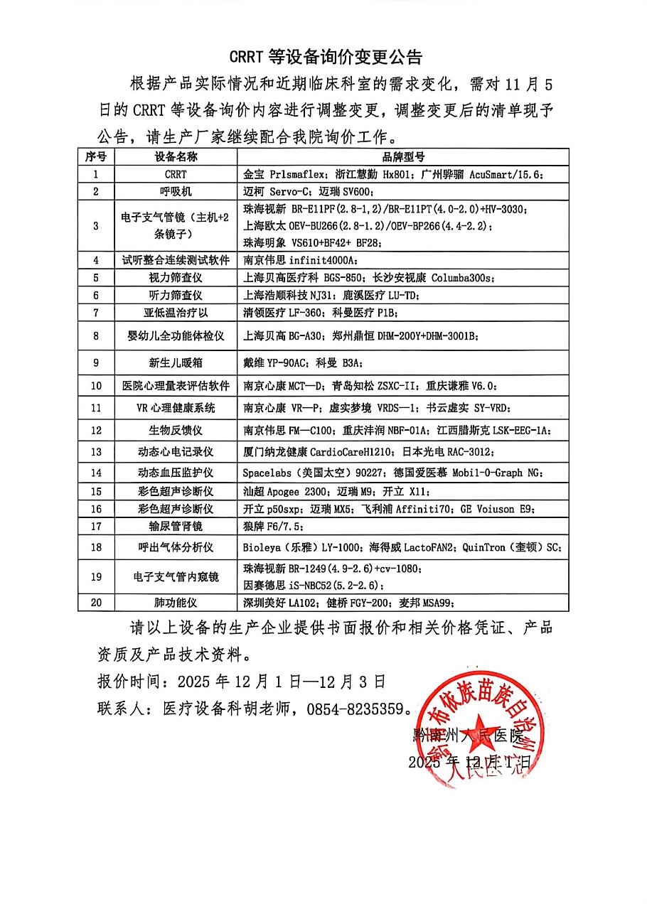 作者:黔南州医院设备科 来源: 黔南州人民医院 发布日期:2025-12-01 11:17:28 浏览次数: