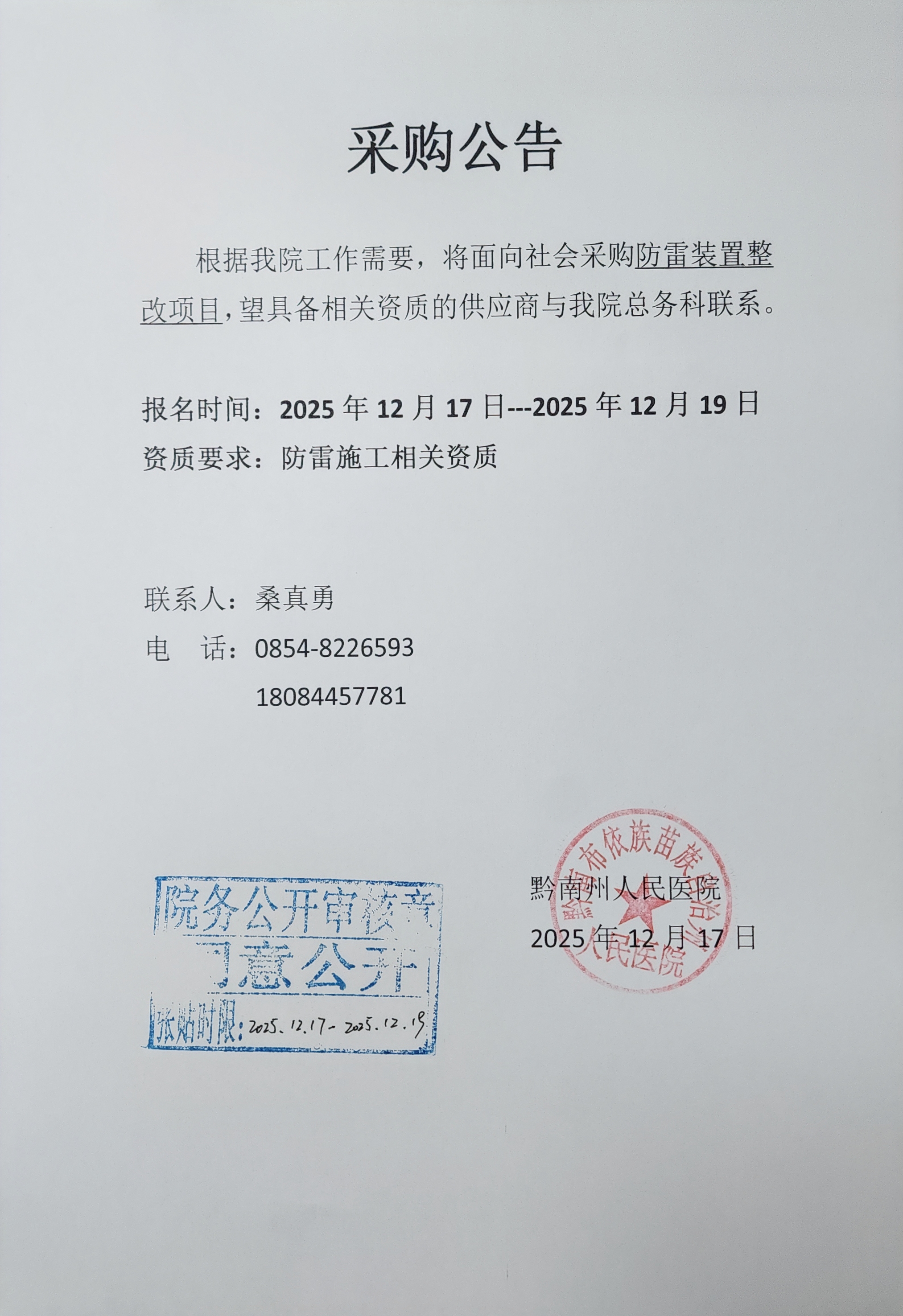 关于黔南州人民医院防雷装置整改项目的采购公告