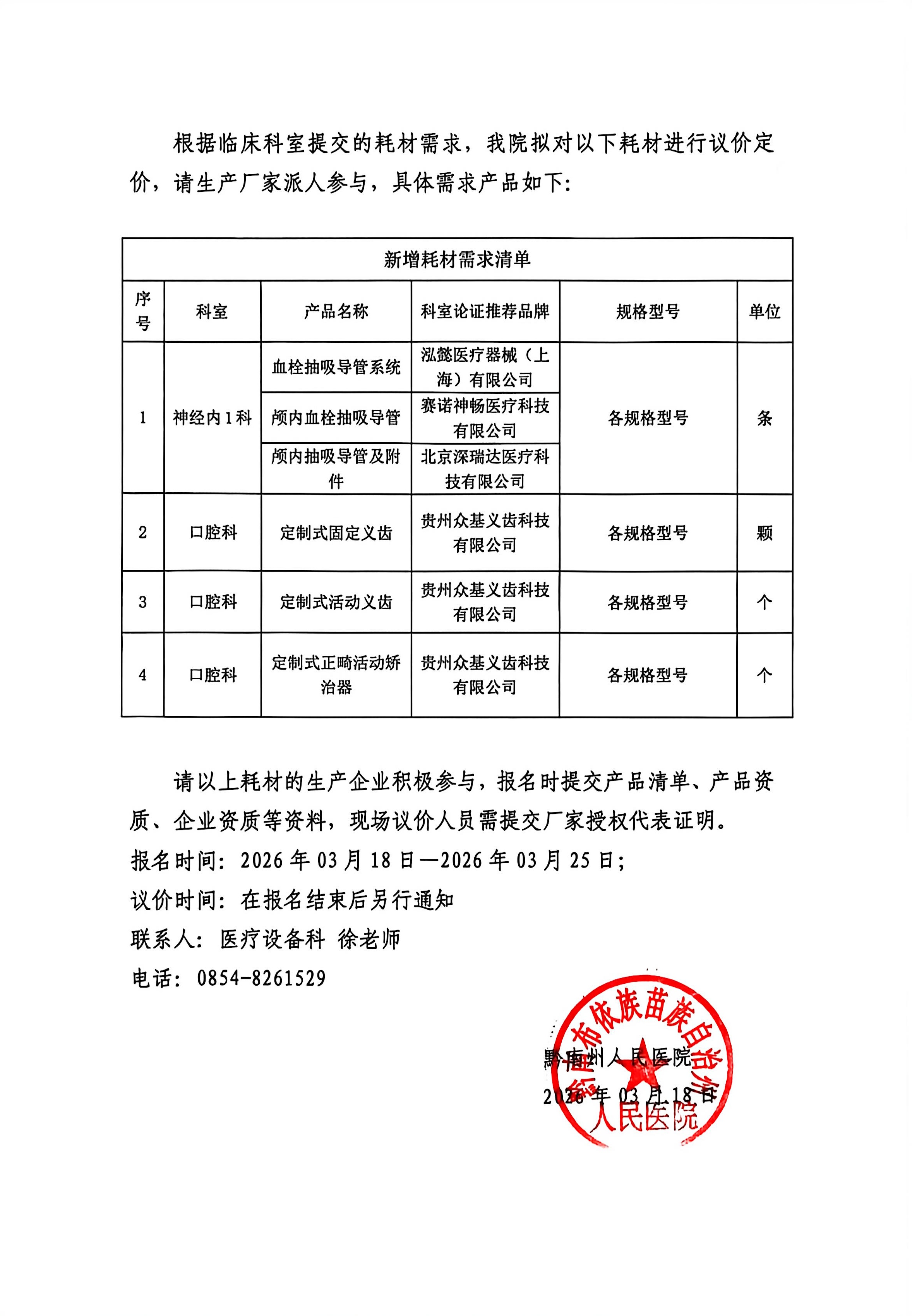 黔南州人民医院医用耗材议价公告